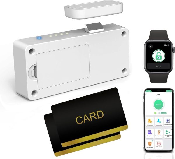 Cabinet Lock Hidden Drawer Lock with RFID Card NFC Child Safety for Kitchen Pantry Furniture Support Phone or Watch App No Drilling White